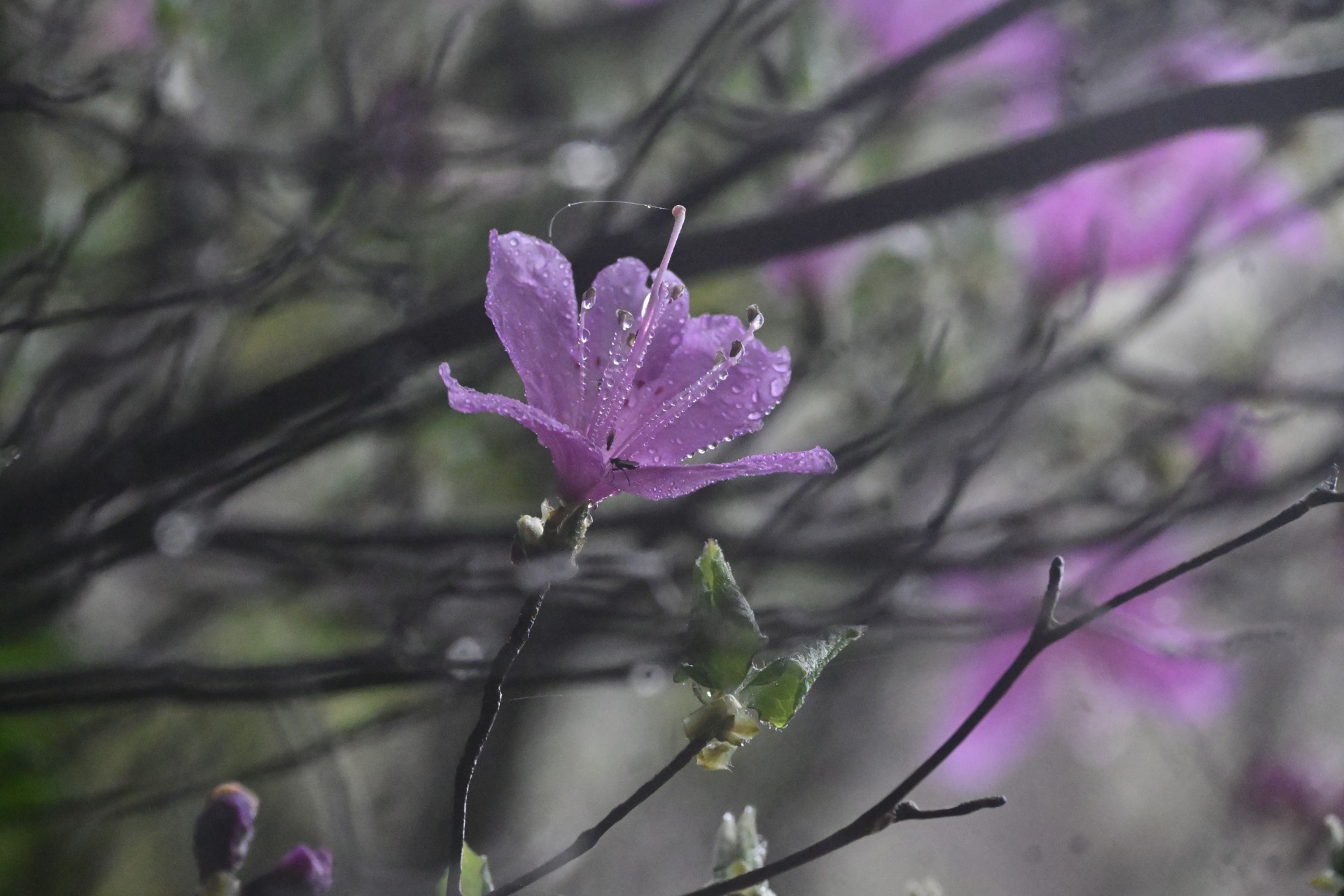 コバノミツバツツジ。昨日に引き続き、山頂で開花に出会えました。