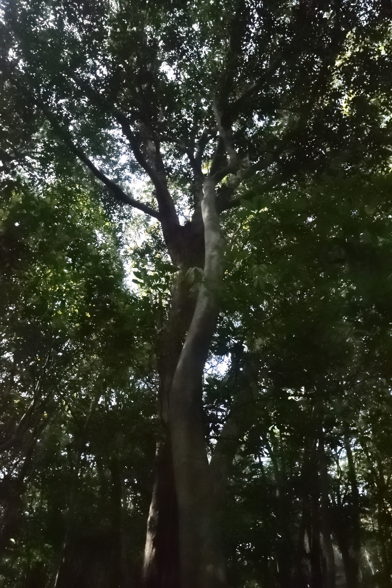 優占種はイスノキ。私にはなじみが少ない樹種ですが、樹皮の特徴で見分けは容易です。耐陰性が強く、閉鎖林冠下で前生稚樹をつくるそうです。