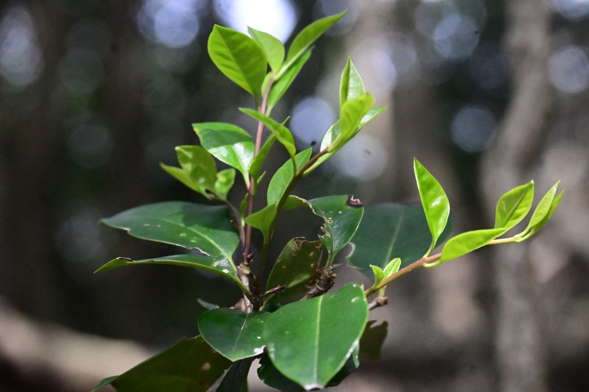 ギャップ内にはイヌガシが多く更新。シカの忌避植物です。